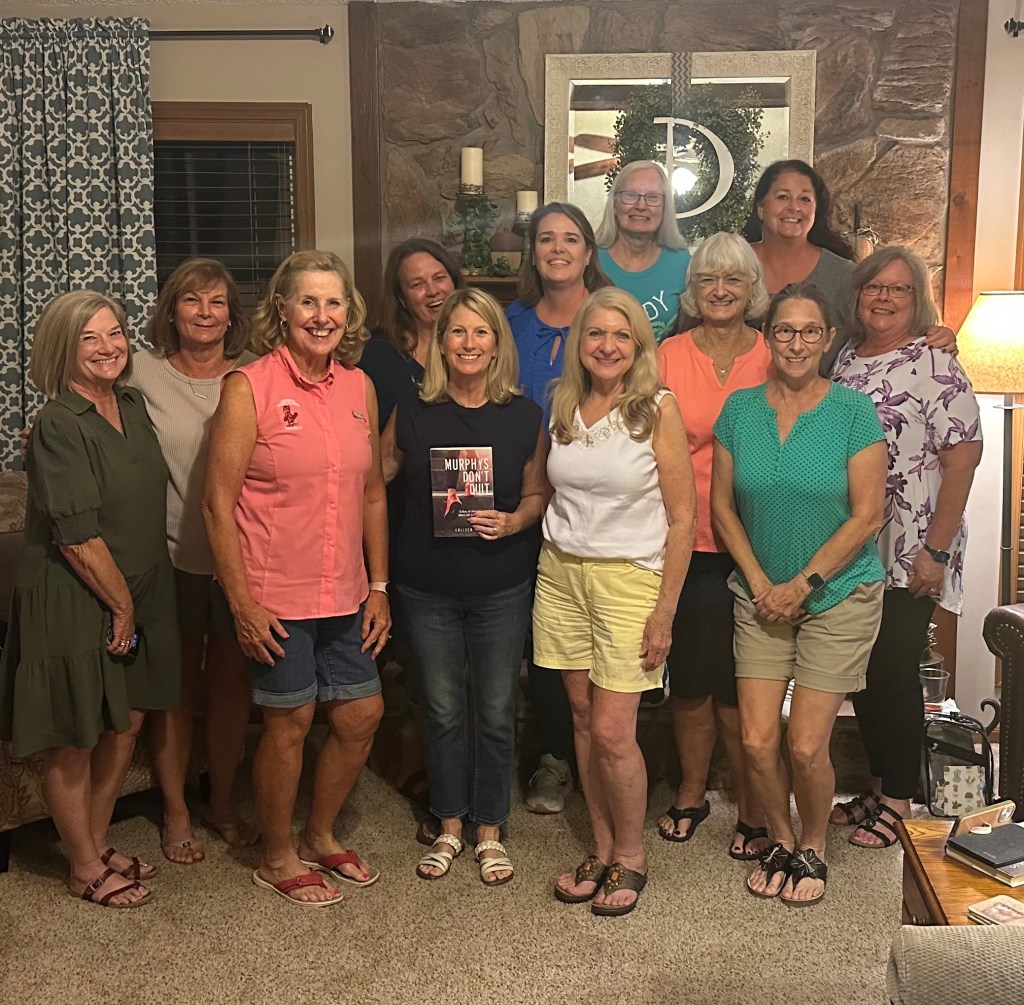 If your club chooses Murphys Don’t Quit for your next read, I’ll join the party and share behind-the-scenes stories about how the book came to be, plus a few fun stories that didn’t make it into the final manuscript. Guaranteed laughs and good conversation!